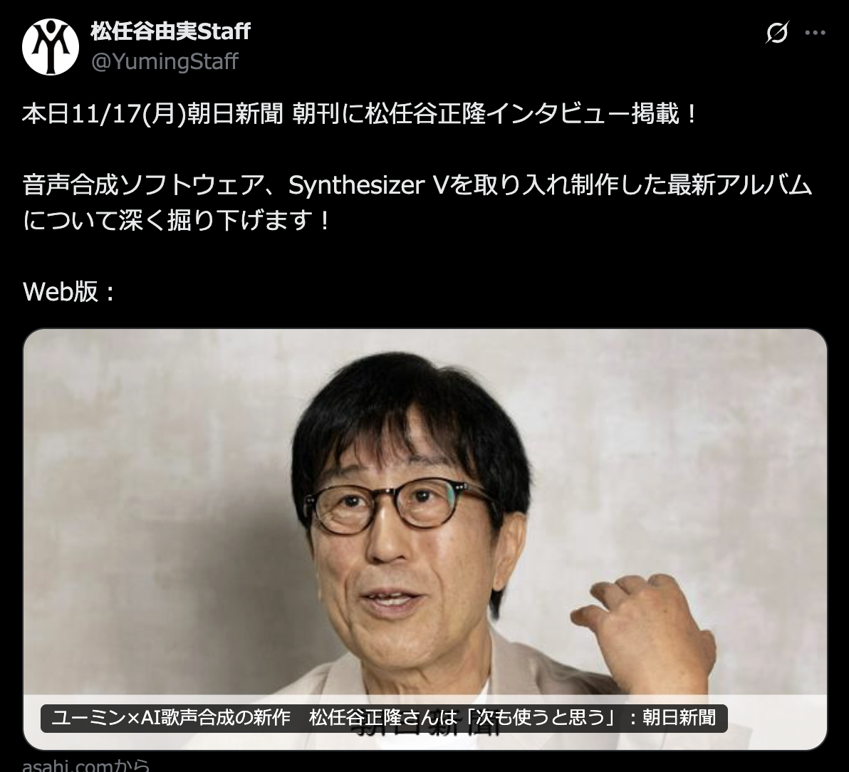 松任谷由実さんの夫君で、アレンジャーとして