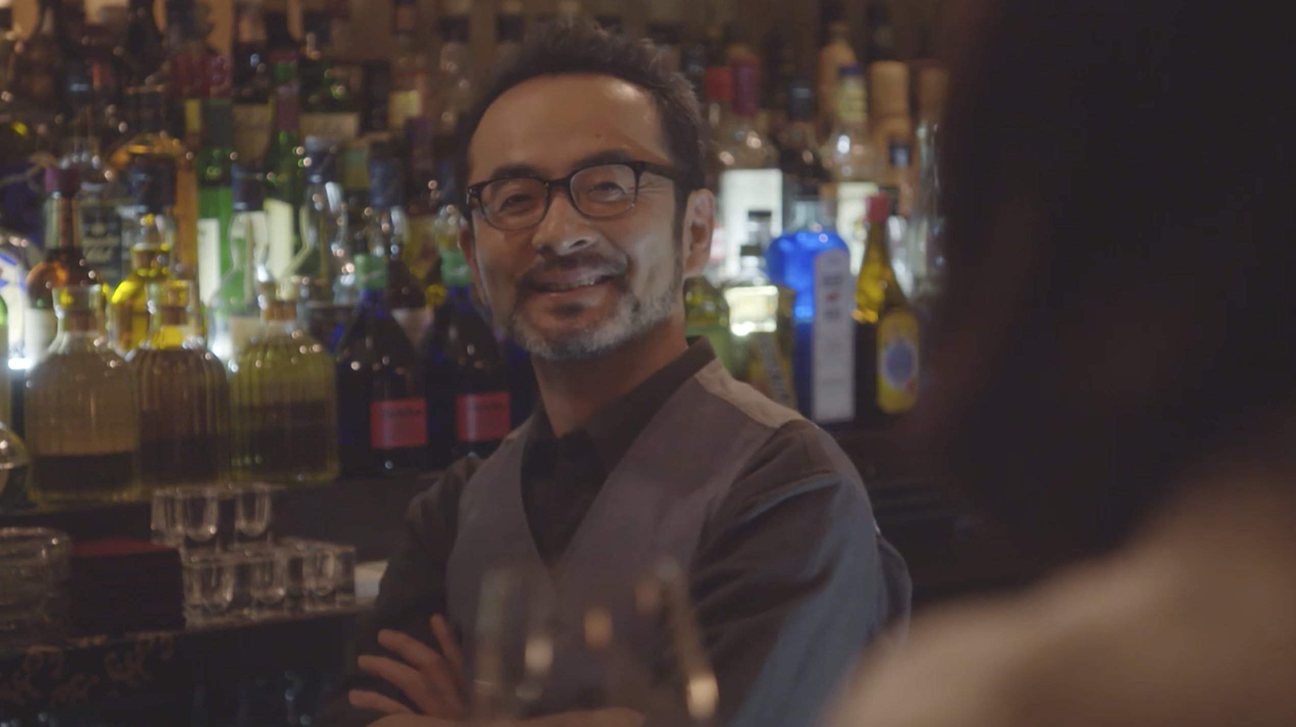〔BAR山にて〕