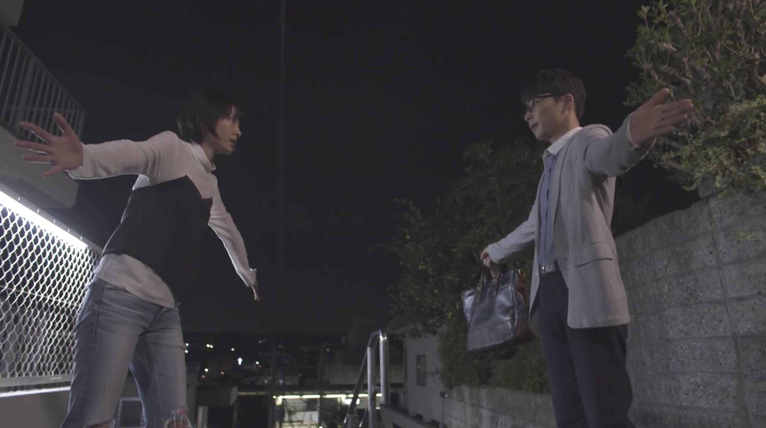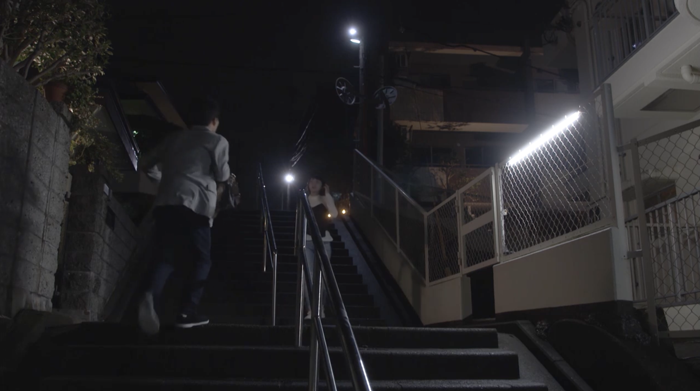 〔平匡のマンションの前の道(階段)にて〕