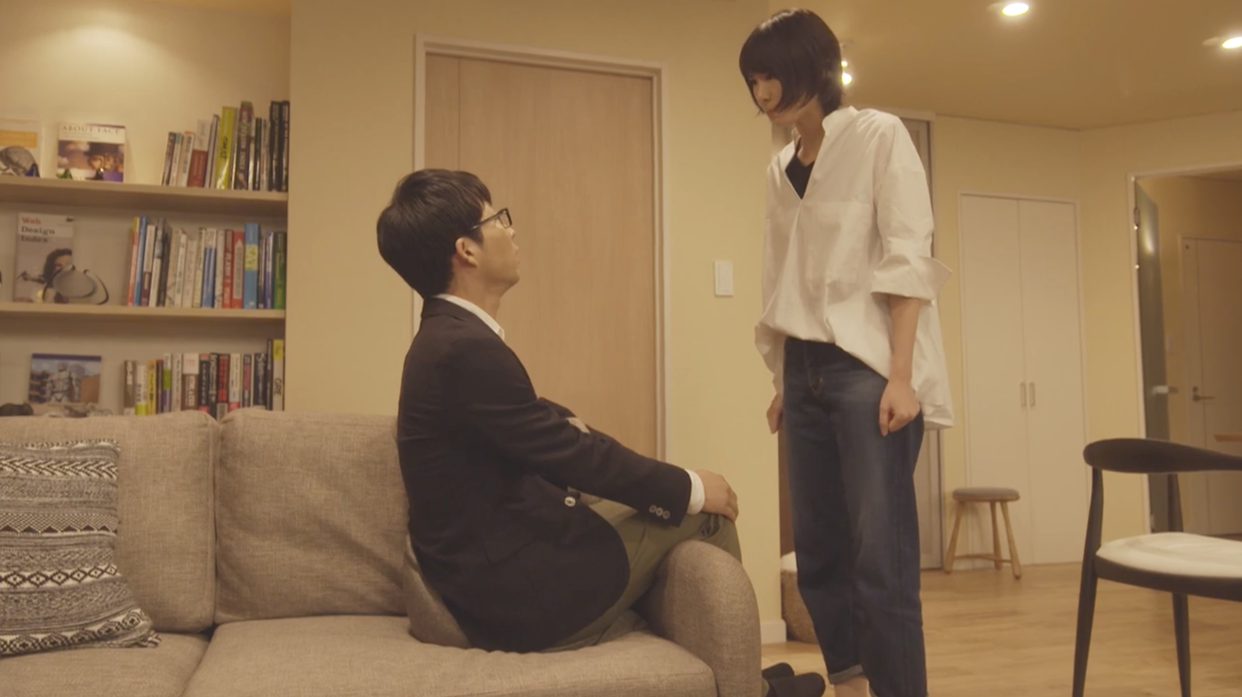 〔平匡のマンション・リビングにて(夜)〕