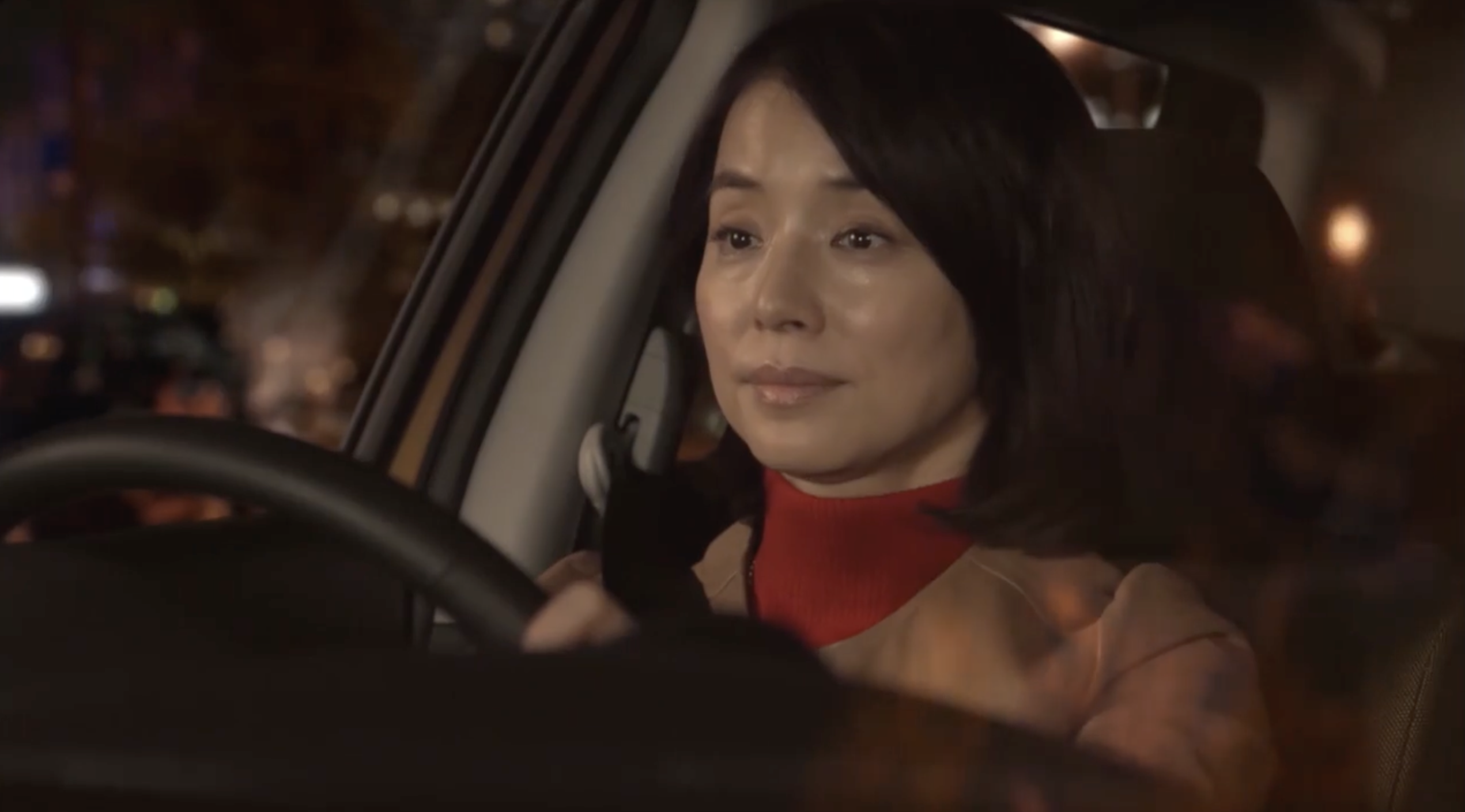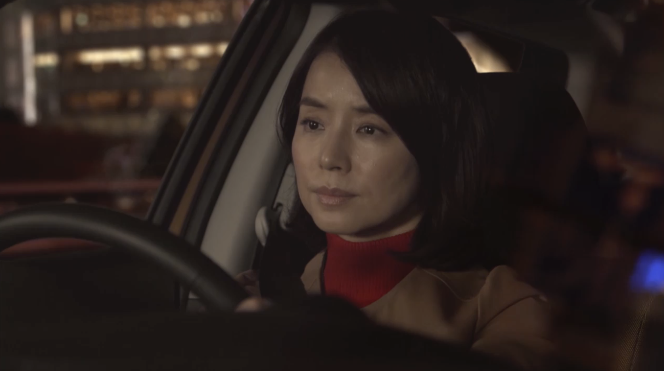 〔百合の運転する自動車の中で。後部座席で寝ている平匡、運転席の百合、助手席の風見〕