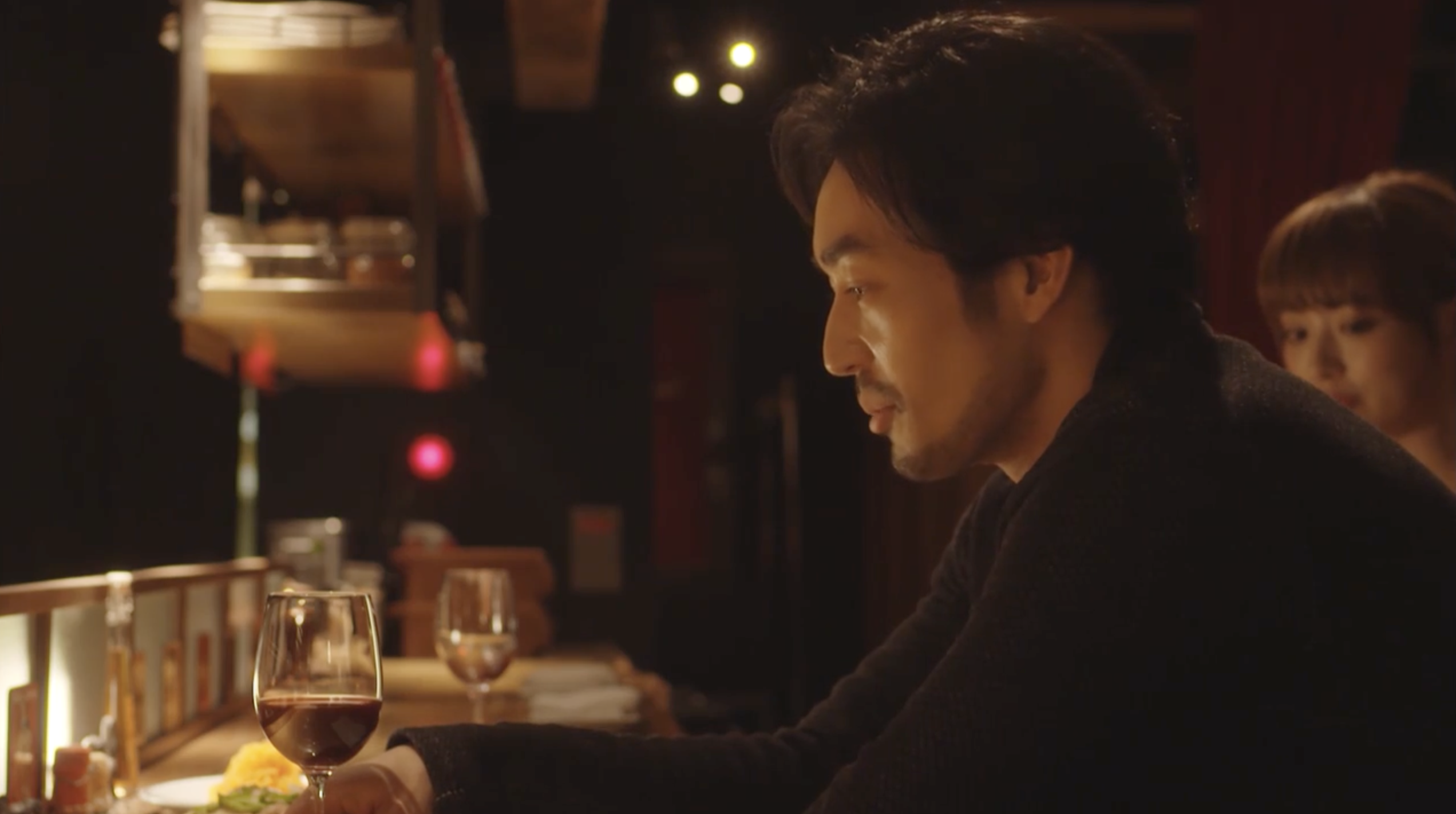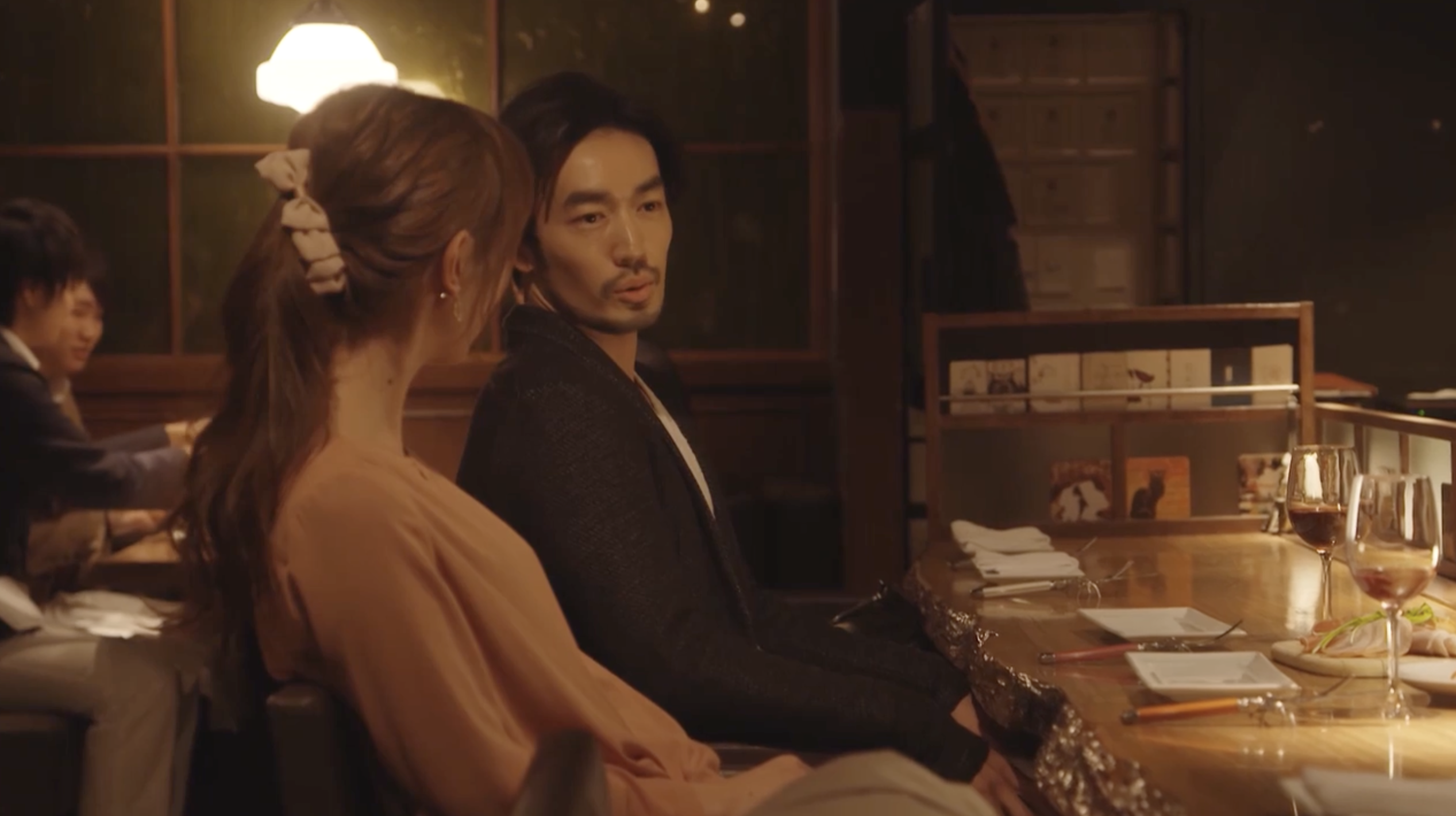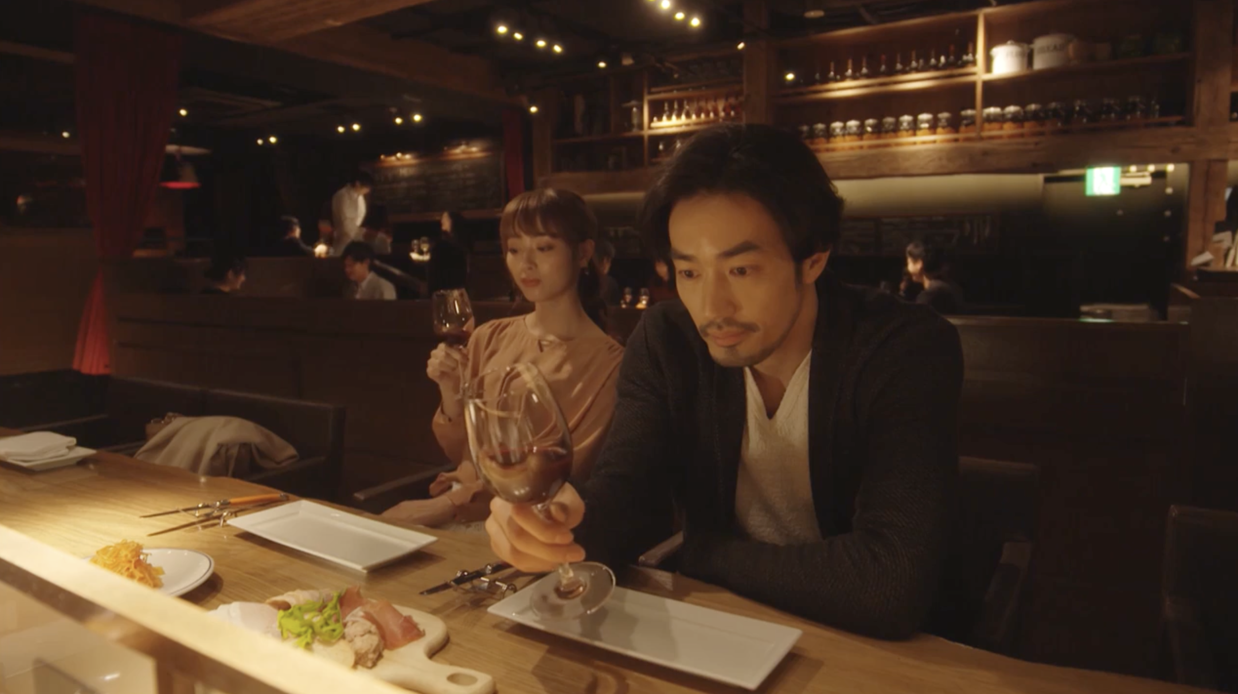 レストランで話しているシーンを。