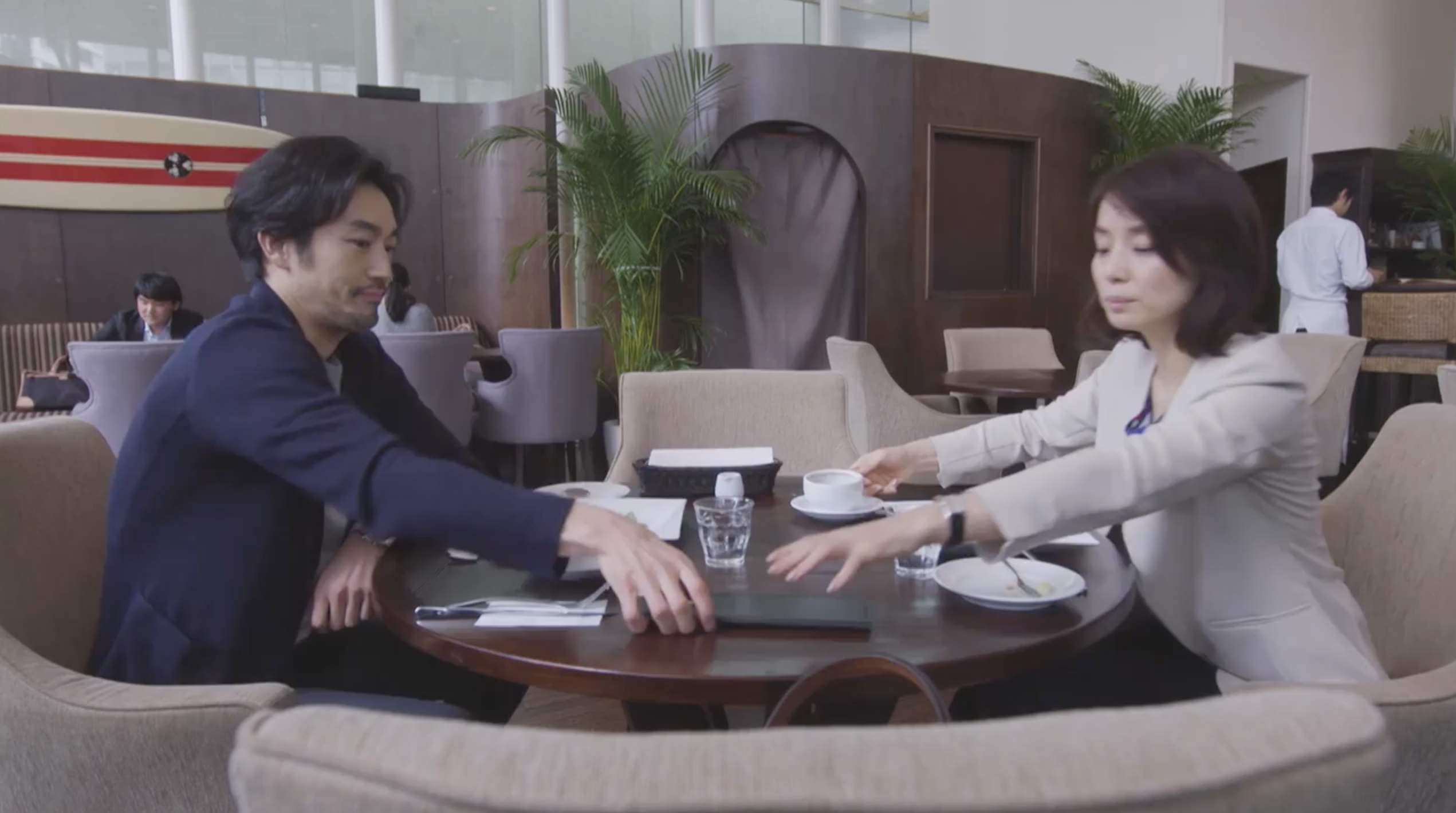 COMMENT:このシーンも、百合と風見がカフェで話しているという非常に日常的な場面で、ただの大人同士のやりとりです。でも、ここに大人同士の対話のテクノロジーが、とてもきれいな形で仕込まれているんですね。