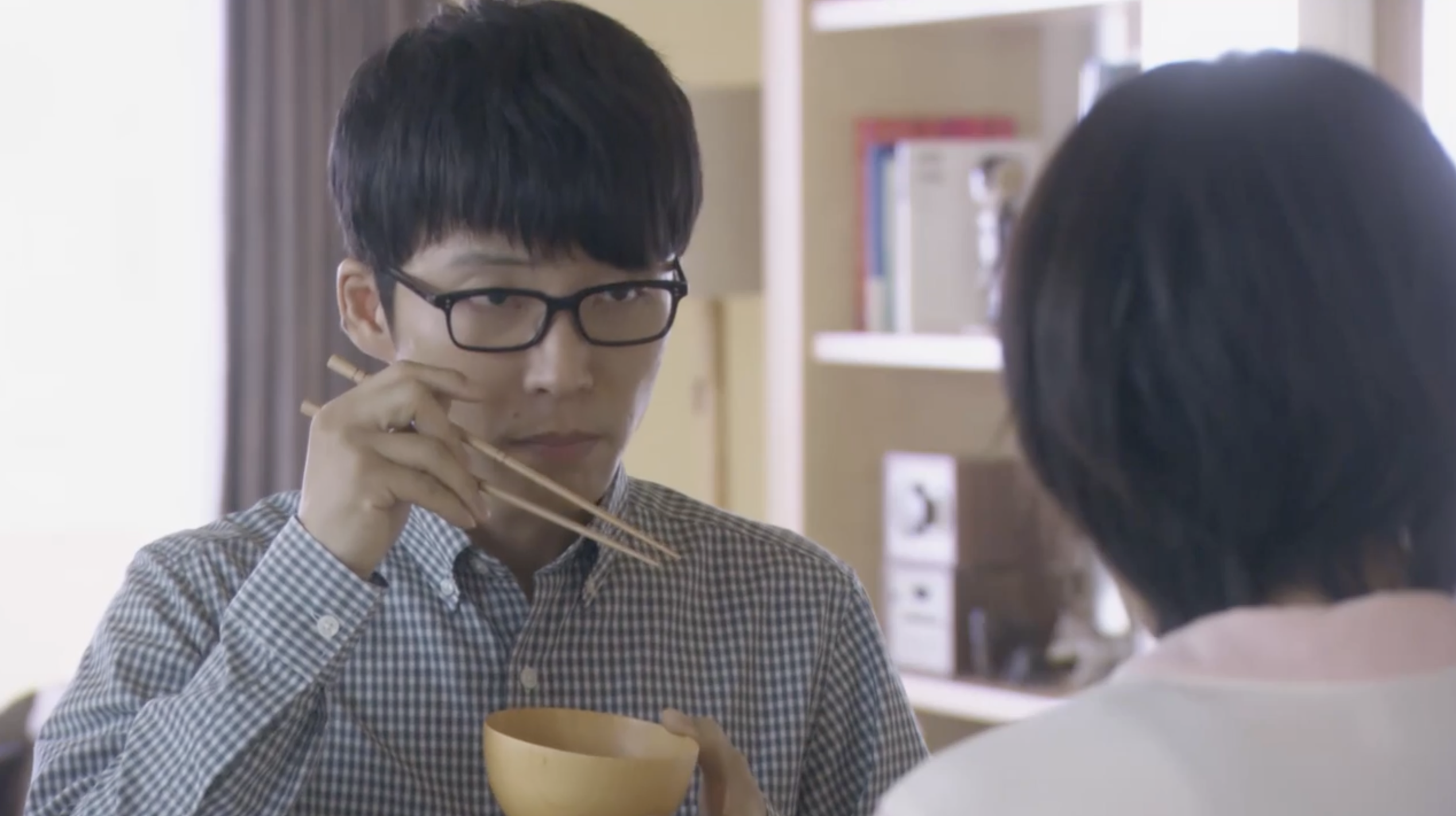 二人の関係が、給与の発生する契約結婚だと風見にバレてしまった第3話のエンディング。第4話は、タイトルバックが流れるまでの冒頭10分余において、平匡が「週1でみくりをシェアさせて欲しい」という風見からの提案に動揺しながら、みくりにそのことを「話せない」まま時間だけが過ぎていく、という筋立てになっていました。その「話せない」という流れがどう形づくられていくのか――まさにこの場面から、日常の呼吸の中にまで入り込んできている様子が窺えるわけです。