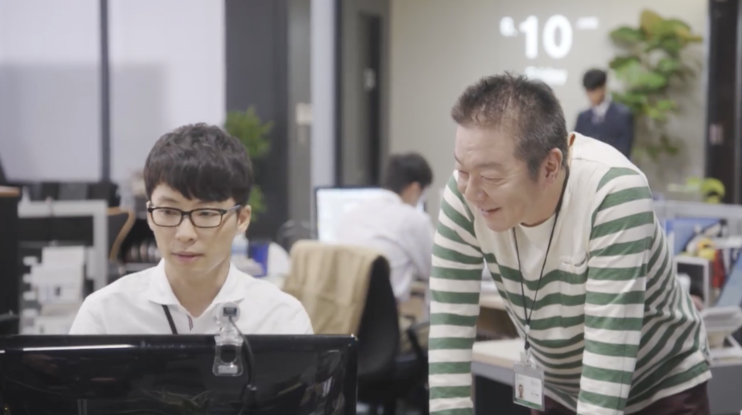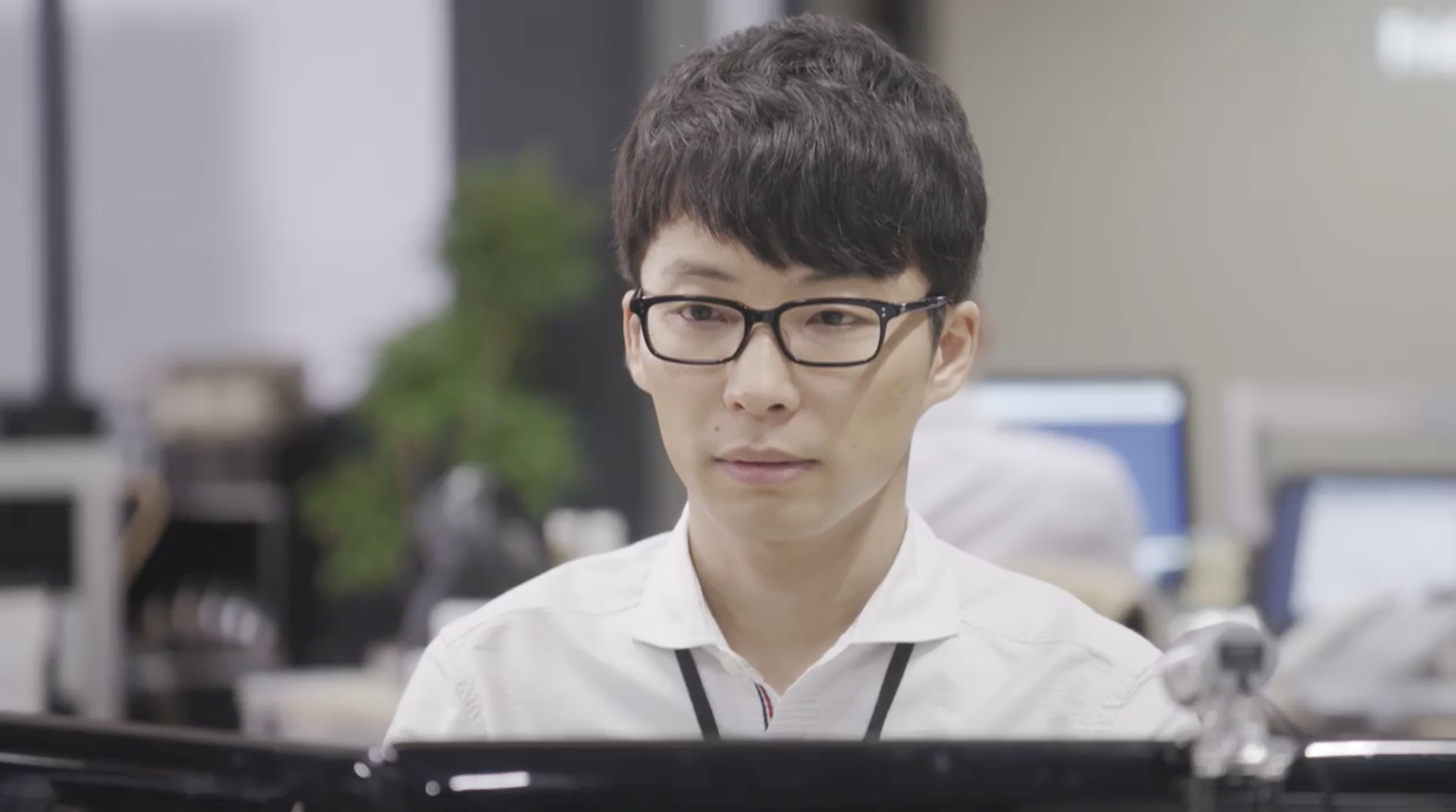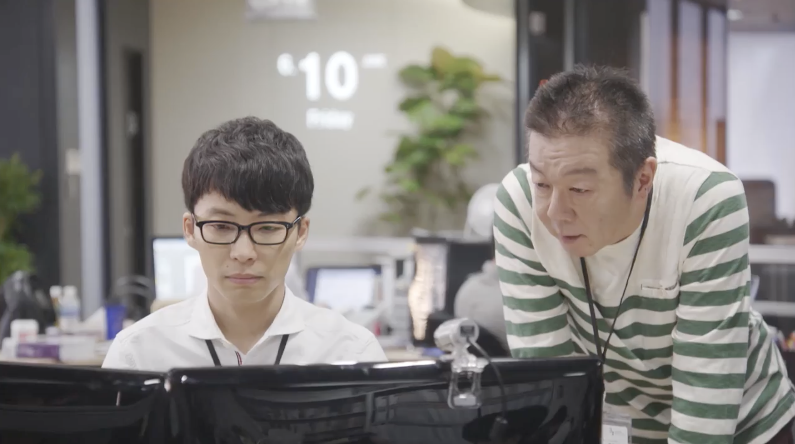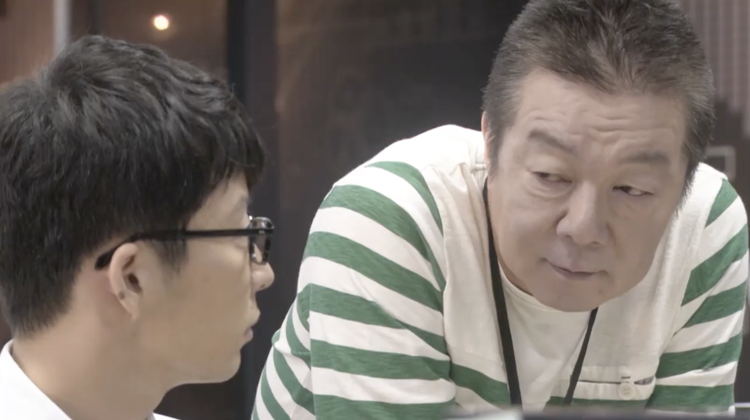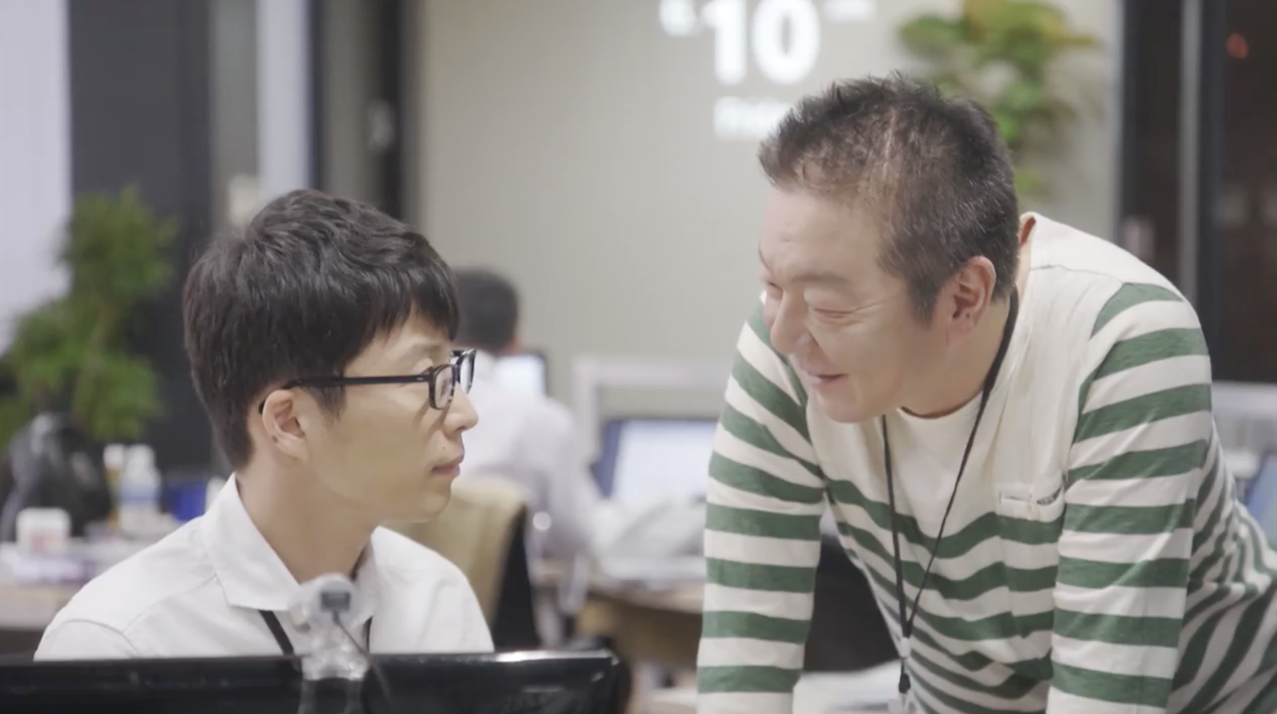 COMMENT:このシーンは、第1話の前半、スリーアイシステムのオフィスで、平匡の手がふっと止まる時間が何度も映ります。プログラム画面は開いたまま、作業が進んでいるようでいて進んでいない。周囲はいつも通りの職場のざわめきなのに、本人の中だけ別の処理が走っている感じがするんですよね。そこへ沼田が、いかにも沼田らしく距離を詰めてくる。「これ、いらないんじゃない?」とプログラム・コードの話から入りつつ、いつの間にか平匡の異変監視へと話題が移っていく。からかっているようで、実はちゃんと観察している。職業病だと言いつつ、心配を正当化している。でも、そうした沼田なりのコミュニケーション・スタイルも、平匡にとっては助け舟になっているのかもしれません。