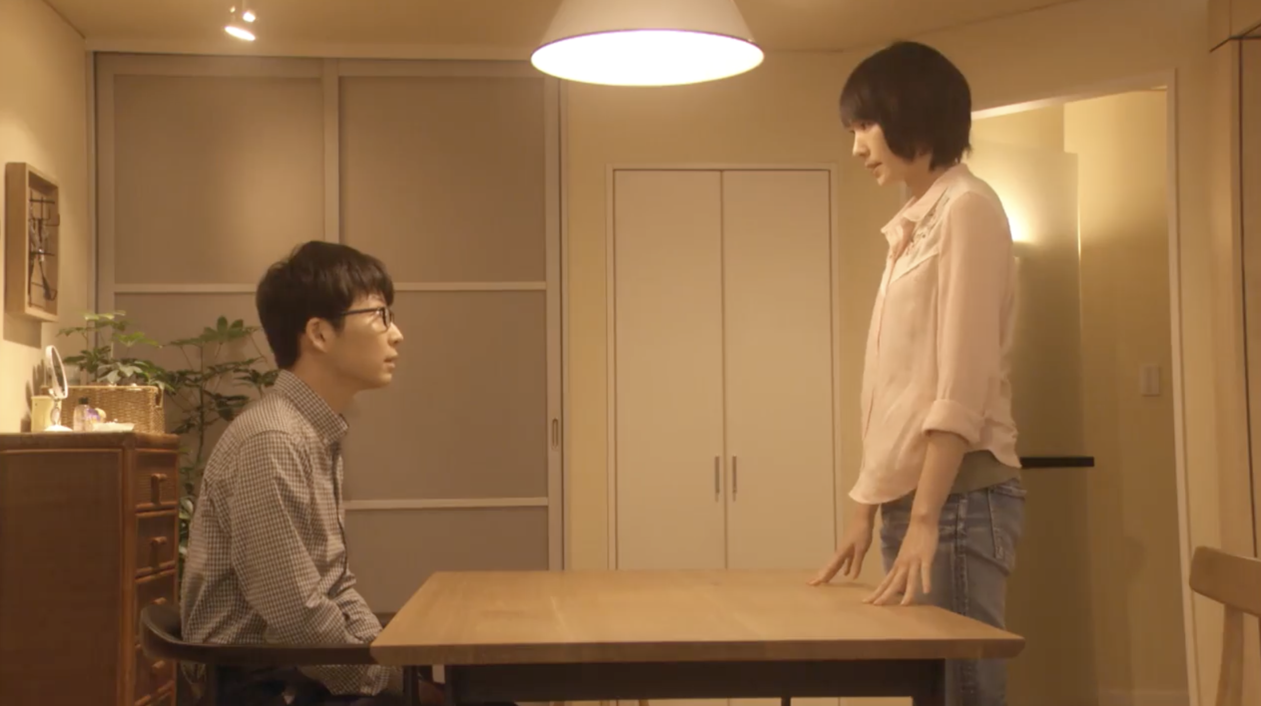 冒頭、平匡の「要点は3つです。」という宣言は、几帳面さの発露というより、感情が暴走しないよう、話を〝手順〟に落とし込むための儀式のように感じました。風見が見抜いたこと、風見が雇いたいと言っていること、そして最後に「どうするかは、みくりさんの自由意志です」。この順番は、夫婦の話し合いというより、まさに会社での報告や説明の型そのものです。つまり、〝会議〟の手順に寄せているわけで。その寄せ方が、二人が第1〜3話で築いてきた「契約結婚」というシステムの延長線上にあって、ここまで来てもなお、制度と手順に救いを求めている平匡の姿が見えてきます。