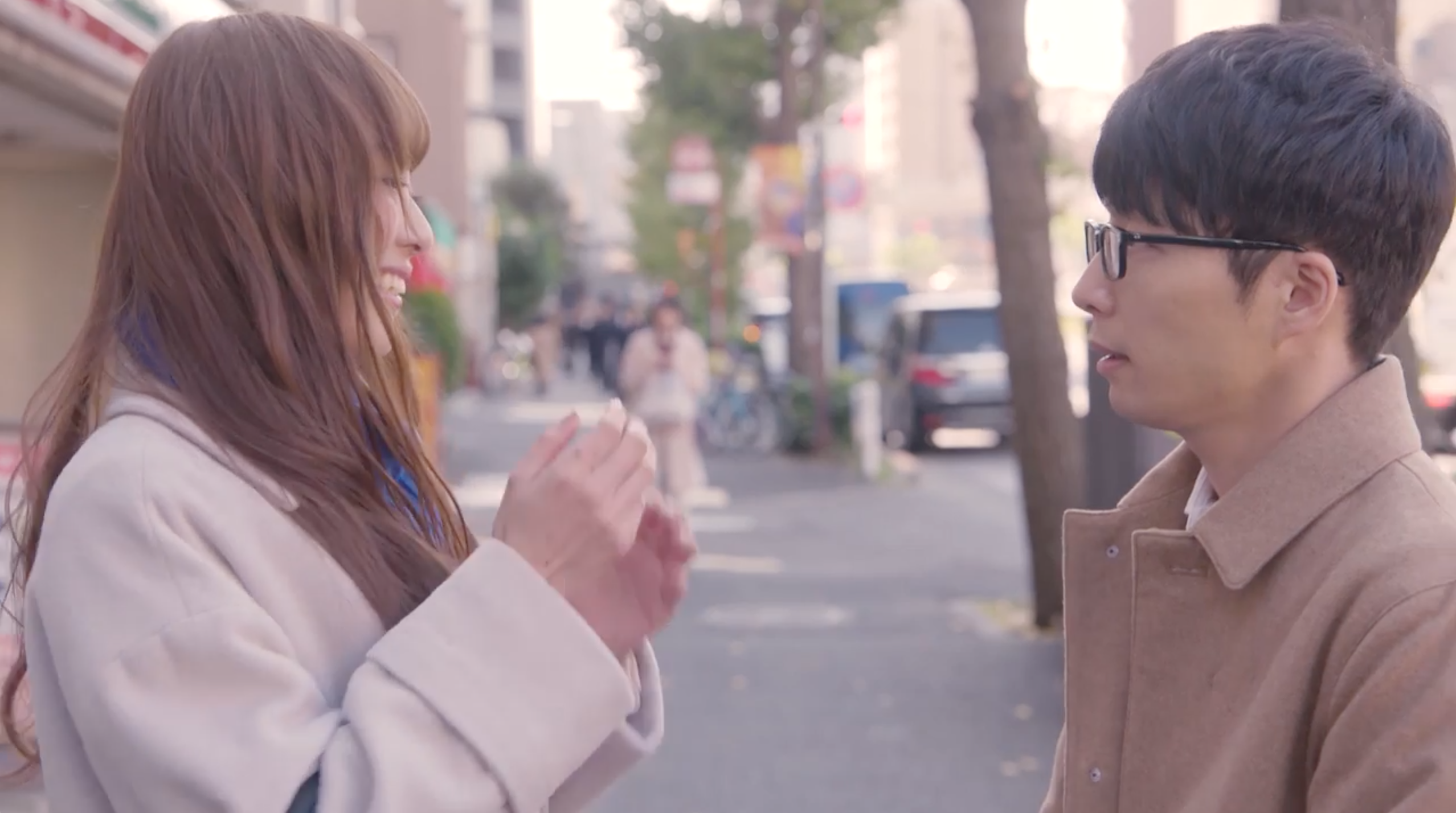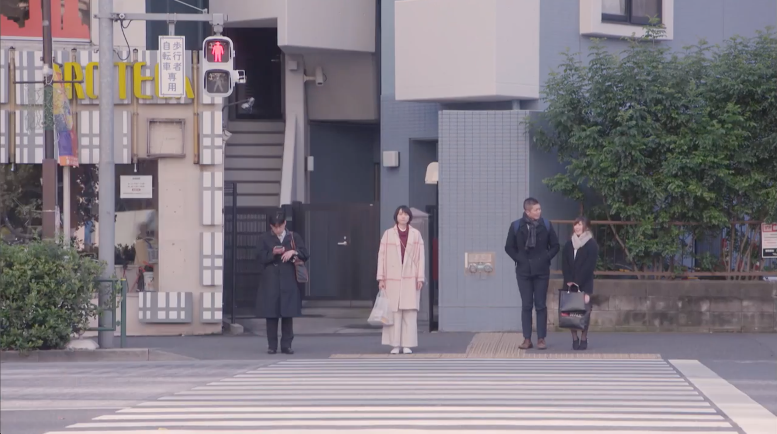 〔信号待ちしているみくりが、車道の向こう側に並んで歩く平匡と五十嵐を発見〕